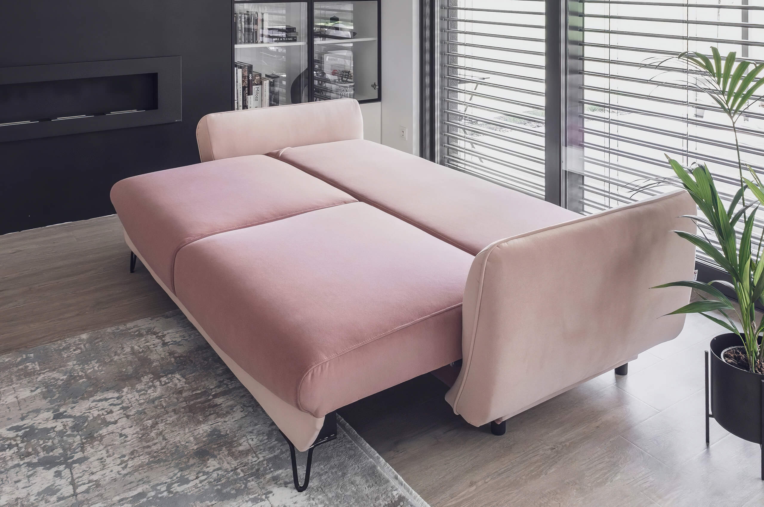 Neben der ansprechenden Optik überzeugt Sonic durch Funktionalität: Ein geräumiger Bettkasten bietet zusätzlichen Stauraum, während die Schlaffunktion mit einer Liegefläche von 200 x 145 cm das Sofa in ein bequemes Gästebett verwandelt. Der integrierte DL-Mechanismus erleichtert das Ausklappen erheblich.